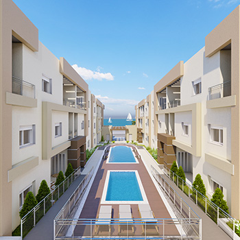 Située à Chott Meriem près du port El Kantaoui dans la région de Sousse, la « Résidence Tilel » est édifiée sur la frange maritime ayant un accès direct sur la voie Chott Meriam- Hergla, La Résidence est ouverte sur la mer alliant les qualités d’un ensemble immobilier balnéaire et d’une cité verdoyante. La Résidence est constituée de Villas, de Duplex et d’appartements.